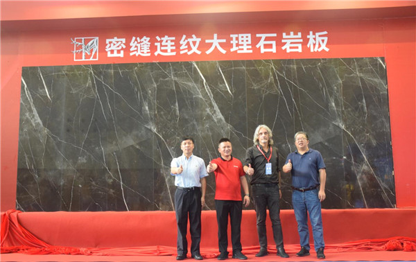 所有参会嘉宾共同见证了大角鹿全新推出的“超耐磨大理石岩板系列”和全国首创的 “密缝连纹铺贴” 新服务的正式面市。这是大角鹿继开创了领跑全球的超耐磨技术后又一里程碑式创新产品与服务,引发各品牌参展商与现场看展人员感慨:“大角鹿代表了陶瓷这一传统行业的新力量,不愧是中国陶瓷行业的一匹黑马!”