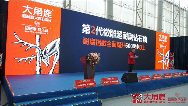 经过一年的专研,大角鹿再次刷新超耐磨新高度,全新推出的“第2代微雕超耐磨钻石釉”技术,耐磨指数全面提升到了6000转以上,比普通瓷砖耐磨3倍以上,防滑性能达到A级,彻底实现了耐磨指数和防滑性能这两方面的“全球绝对领先水平”。发布会后,天九国际娱乐网站网址查询 耐磨大理石岩板系列也将在全球同步上市。”