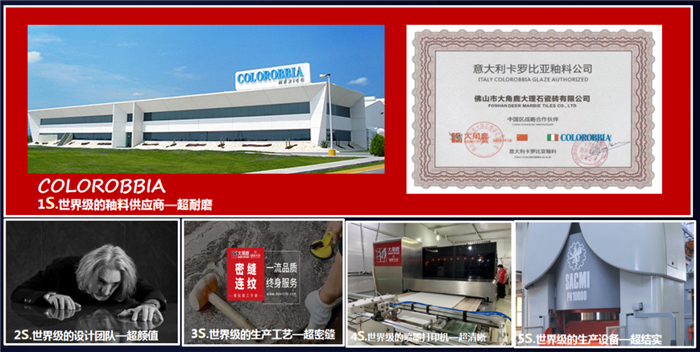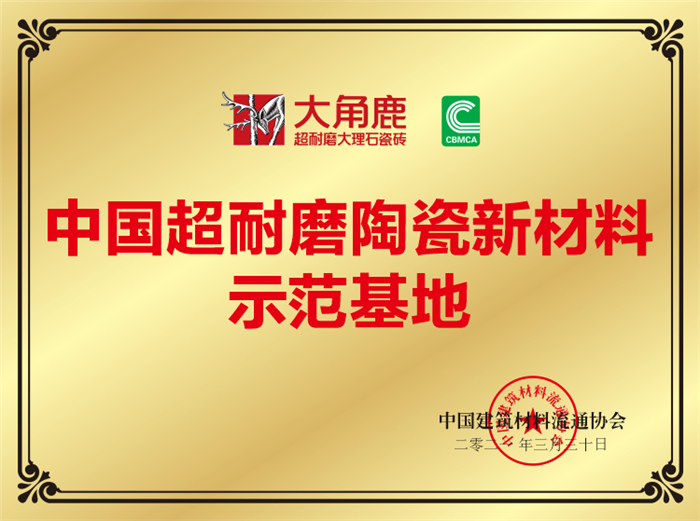 大角鹿拥有中国陶瓷工业协会授予的“中国超耐磨陶瓷新材料研究院”、“大理石瓷砖研究所”和联合意大利卡罗比亚釉料公司成立的“超耐磨钻石釉中国研发中心”三大研发中心以及中国建筑材料流通协会授予的“中国超耐磨陶瓷新材料示范基地”。大角鹿代表着全球最严格的耐磨标准,是瓷砖行业革命性产品,让大理石瓷砖进入超耐磨时代!