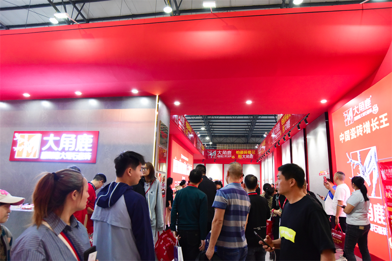 在本届展会上,备受瞩目的大角鹿展馆延续使用吸睛的大角鹿红作为展馆主题色,融合了简约而出挑的造型,成为高安陶博会最“红”的瓷砖品牌。