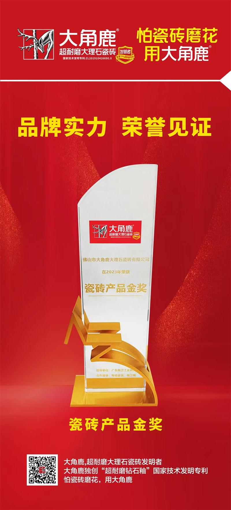 凭借引领全球的超耐磨技术和卓越的产品质量,大角鹿从众多优秀品牌中脱颖而出,在2023中部陶瓷论坛上荣获“瓷砖产品金奖”。