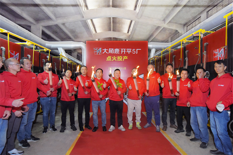 继正月十五大角鹿新丰7厂点火投产后,3月11日,大角鹿开平5厂正式点火投产,此举标志着大角鹿产能规模再次突破新高,为解决产品供不应求提供强有力的产能保障。