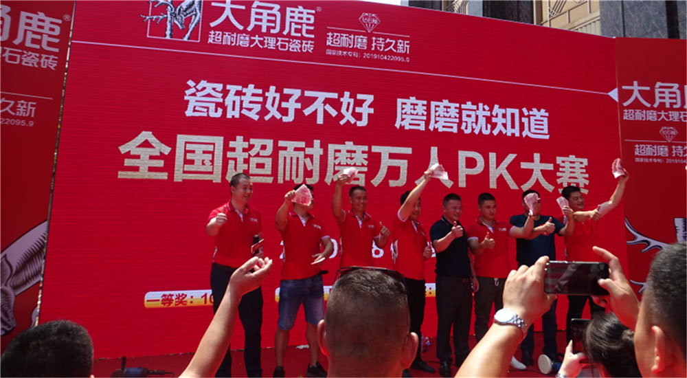 2019年上半年,大角鹿全国超耐磨万人PK大赛共举办330场,共发奖金198万元,每场参与及观摩见证200人以上,超10万人现场见证了大角鹿的超耐磨,3千多万人次通过视频直播观看赛事。